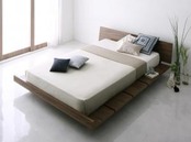 組立設置付き モダンデザインローベッド プレミアムボンネルコイルマットレス付き ワイドステージ セミダブル フレーム幅160