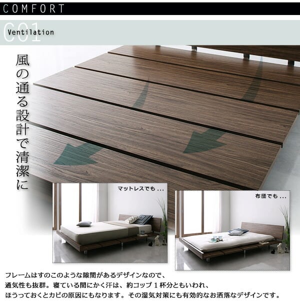 組立設置付き モダンデザインローベッド スタンダードボンネルコイルマットレス付き ワイドステージ セミダブル フレーム幅160