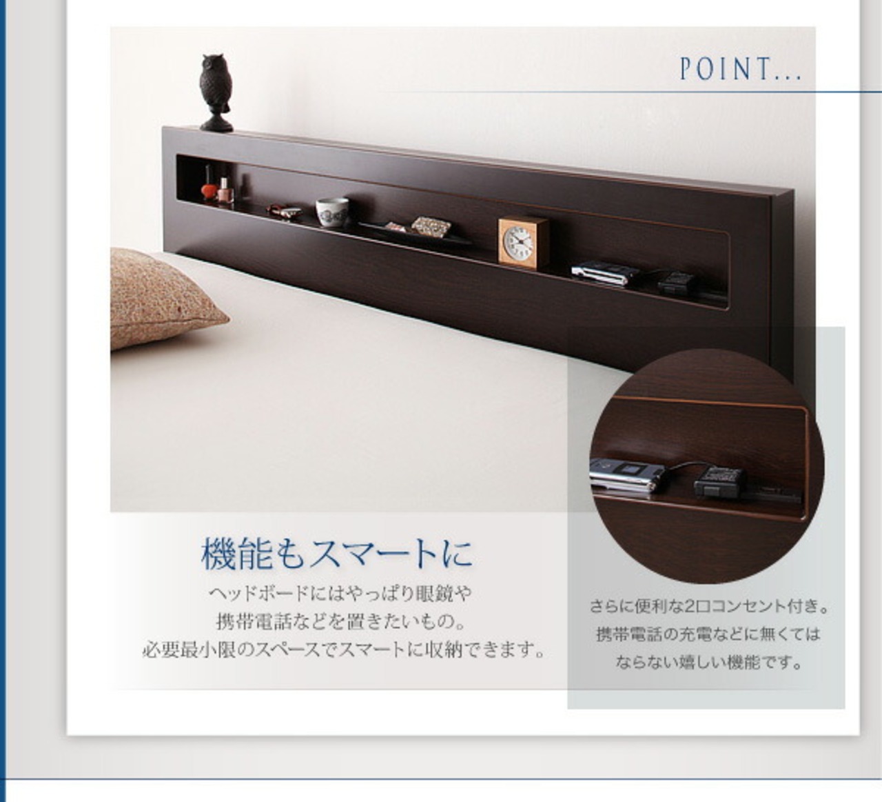 組立設置付 棚・コンセント付きチェストベッド ベッドフレームのみ セミシングル