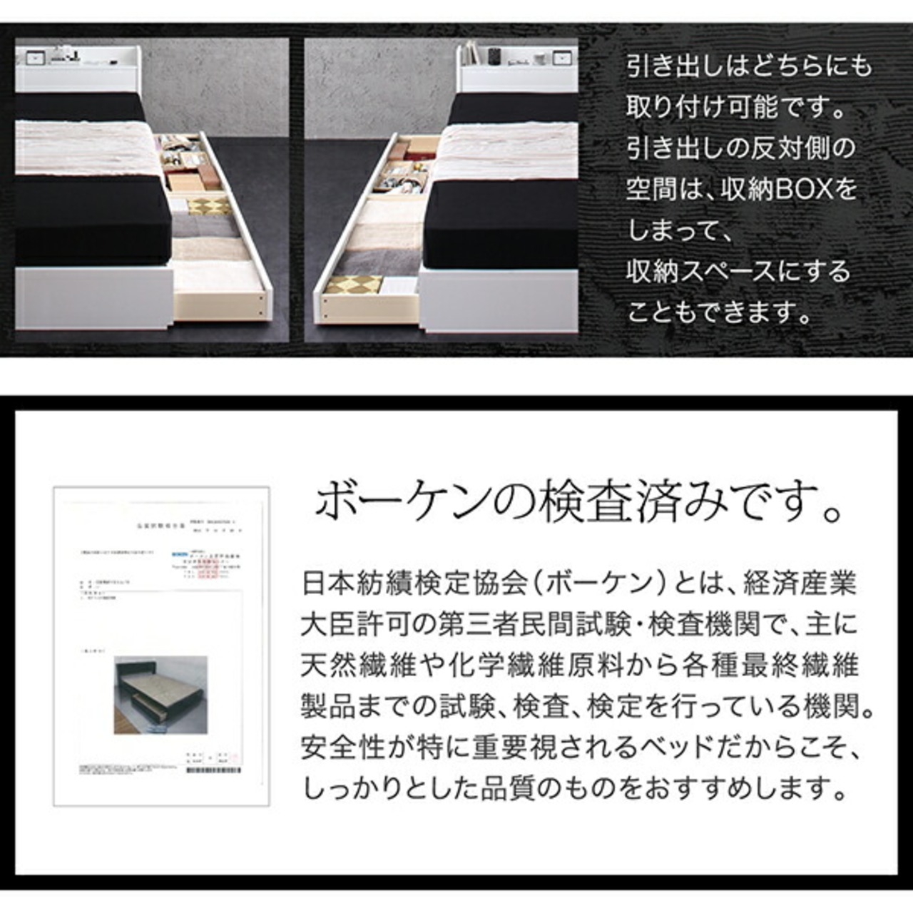 組立設置付き 棚・コンセント付き収納ベッド プレミアムボンネルコイルマットレス付き シングル