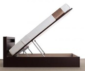 組立設置付 開閉タイプが選べる跳ね上げ収納ベッド 薄型プレミアムポケットコイルマットレス付き 縦開き セミシングル 深さラージ