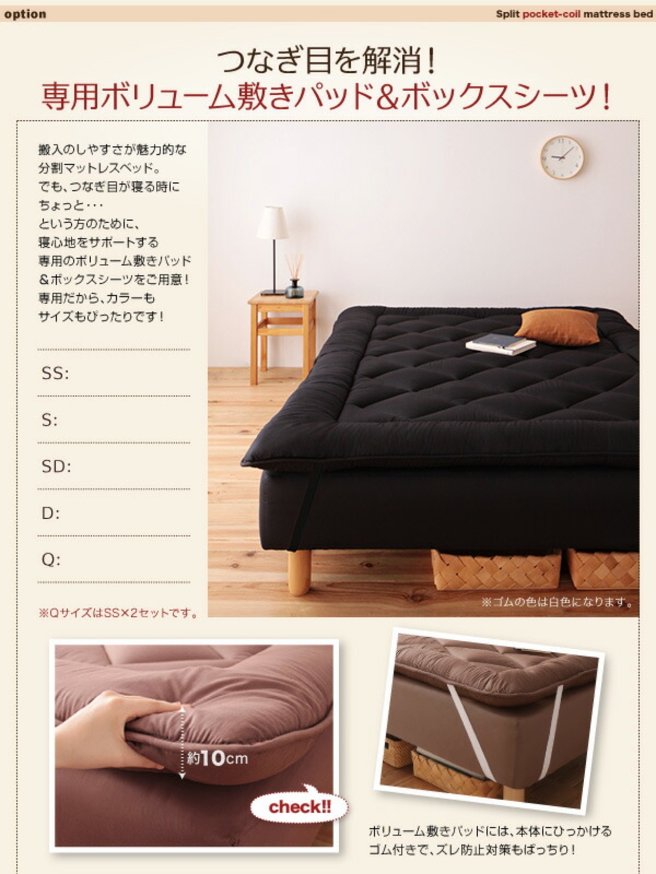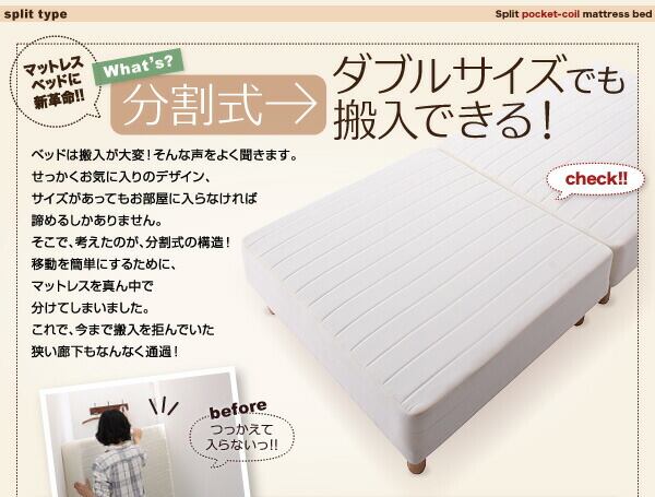 組立設置付き 新・移動ラクラク 分割式マットレスベッド マットレスベッド ポケットコイルマットレスタイプ セミダブル 脚30cm