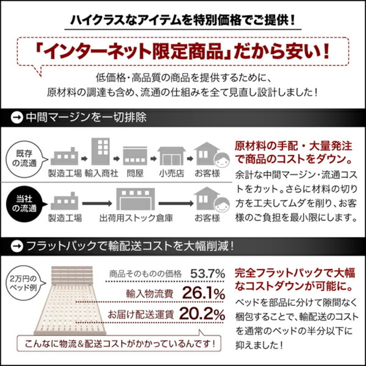 ●ベッド、リビングダイニング、収納家具については【完成品】【組立設置付き】と記載が無い場合はお客様にて組立が必要になります。