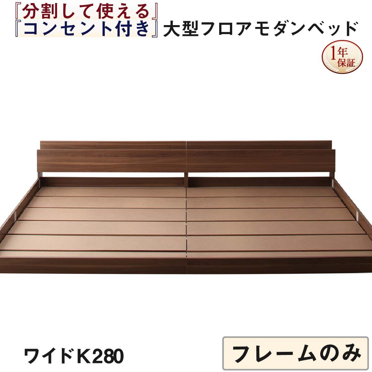 組立設置付き 将来分割して使える・大型モダンフロアベッド ベッドフレームのみ ワイドK280