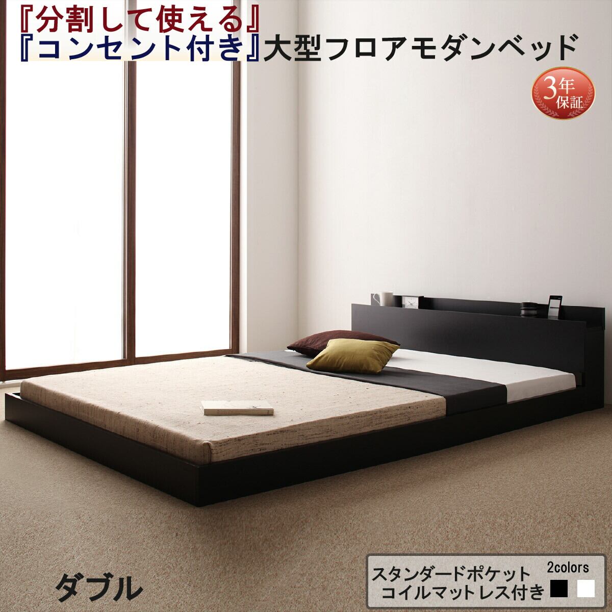 組立設置付き 将来分割して使える・大型モダンフロアベッド スタンダードポケットコイルマットレス付き ダブル