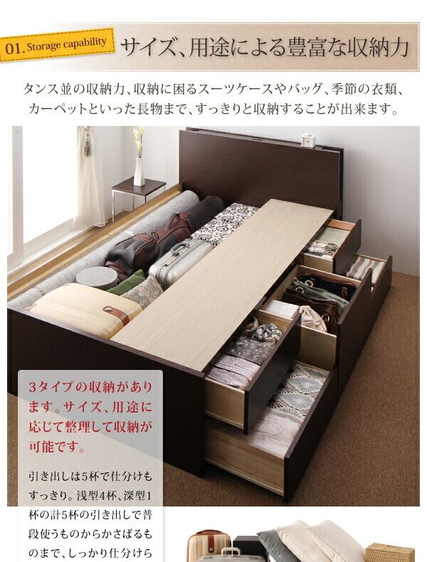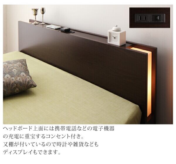 組立設置付 モダンライト・コンセント付きチェストベッド 薄型プレミアムボンネルコイルマットレス付き シングル