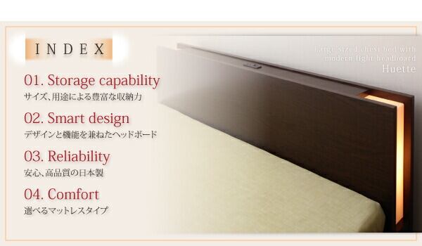 組立設置付 モダンライト・コンセント付きチェストベッド 薄型プレミアムポケットコイルマットレス付き セミシングル