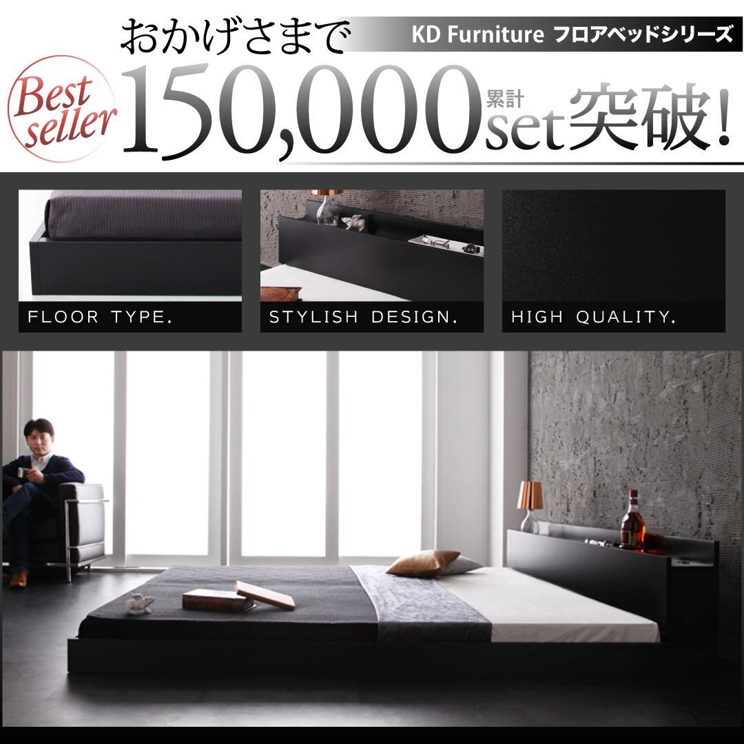 組立設置付き 棚・コンセント付きフロアベッド 国産カバーポケットコイルマットレス付き シングル
