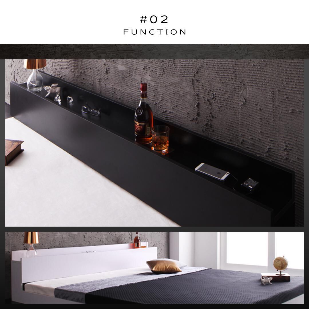 組立設置付き 棚・コンセント付きフロアベッド 国産カバーポケットコイルマットレス付き ダブル