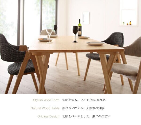 組立設置付き 北欧デザインワイドダイニング 5点セット(テーブル+チェア4脚) W170