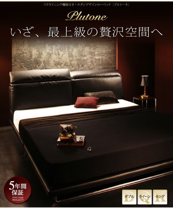 組立設置付き リクライニング機能付き・モダンデザインローベッド スタンダードポケットコイルマットレス付き ダブル