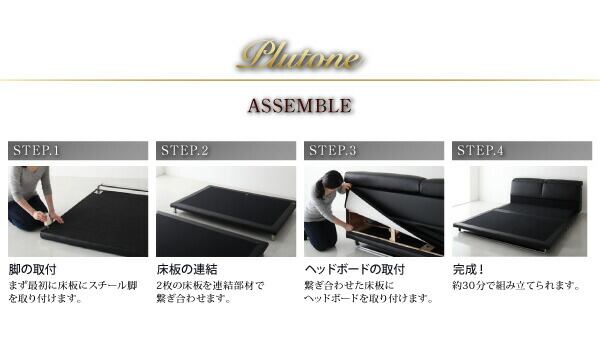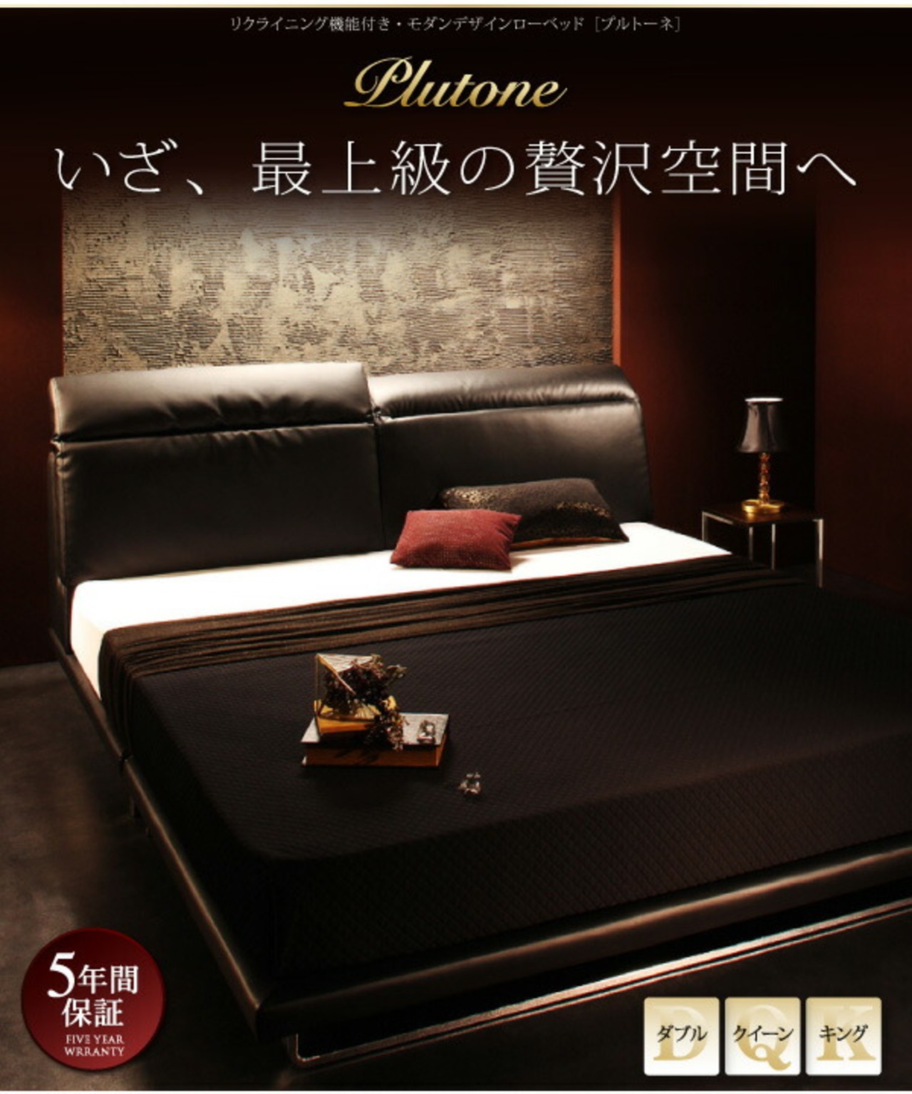 組立設置付き リクライニング機能付き・モダンデザインローベッド マルチラススーパースプリングマットレス付き ダブル