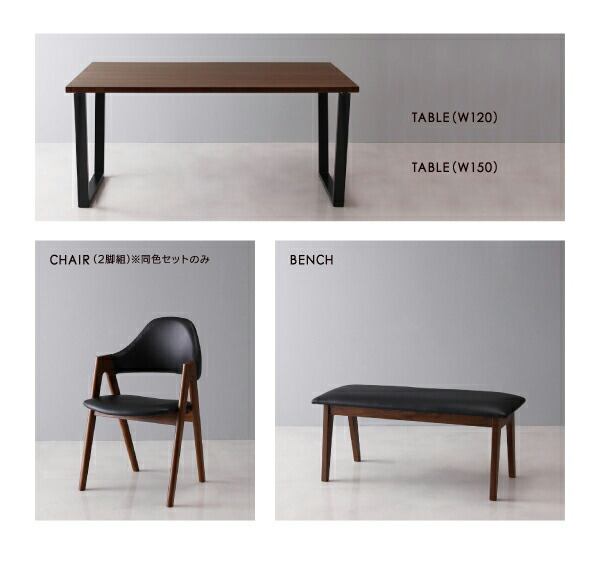 組立設置付き 天然木ウォールナットモダンデザインダイニング 5点セット(テーブル+チェア4脚) W150