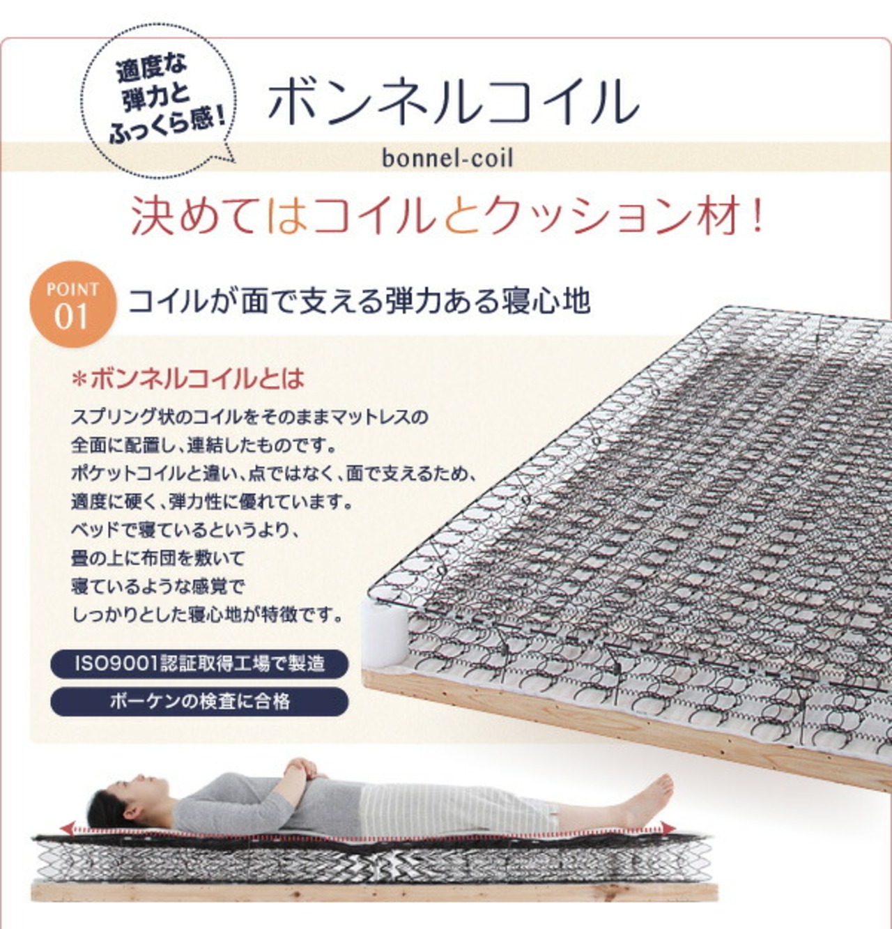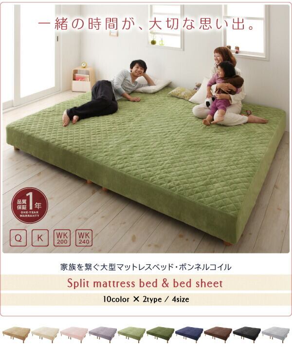 組立設置付き 家族を繋ぐ大型マットレスベッド ボンネルコイル マイクロファイバータイプセット ワイドK200 脚22cm