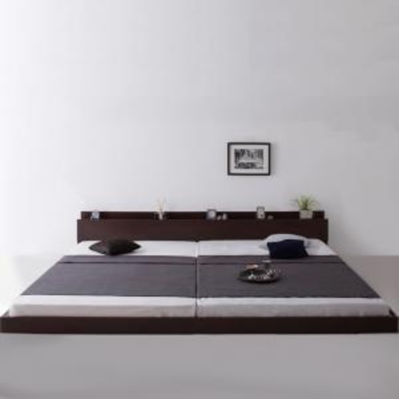 組立設置付き スーパーワイドキングサイズ 大型モダンフロアベッド プレミアムポケットコイルマットレス付き ワイドK260(SD+D)