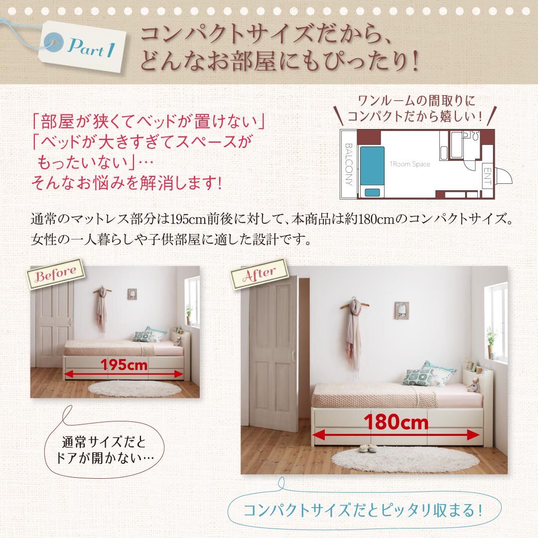 組立設置付 棚・コンセント付き_大容量コンパクトチェストベッド ベッドフレームのみ シングル ショート丈