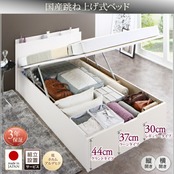 組立設置付 国産跳ね上げ収納ベッド ホワイト 薄型スタンダードボンネルコイルマットレス付き 横開き シングル 深さラージ