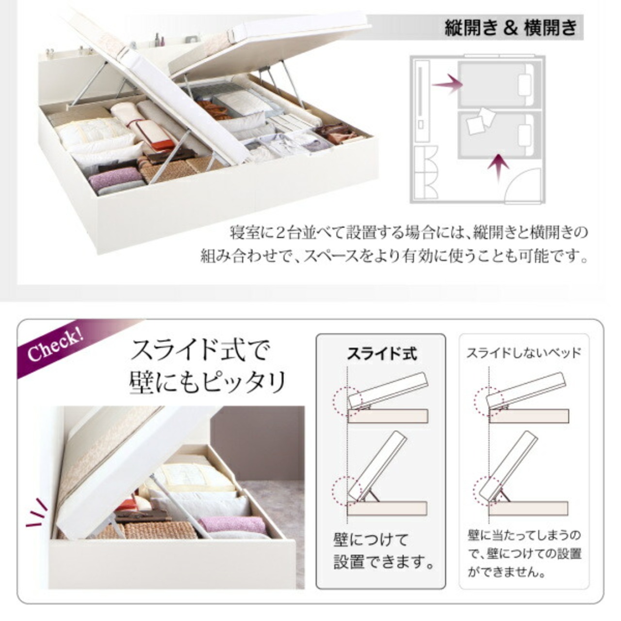 組立設置付 国産跳ね上げ収納ベッド ホワイト 薄型プレミアムボンネルコイルマットレス付き 縦開き シングル 深さグランド