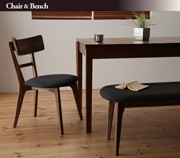 組立設置付き 天然木ウォールナットエクステンションダイニング 6点セット(テーブル+チェア4脚+ベンチ1脚) W120-180