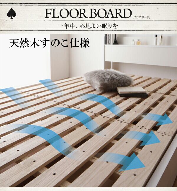 組立設置付き 棚・コンセント付き収納すのこベッド ベッドフレームのみ ダブル