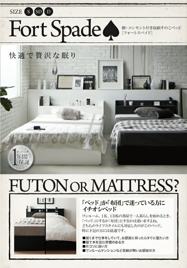 組立設置付き 棚・コンセント付き収納すのこベッド スタンダードポケットコイルマットレス付き シングル