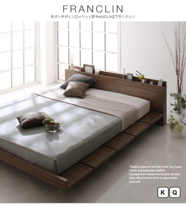 組立設置付き モダンデザインローベッド プレミアムポケットコイルマットレス付き ナローステージ ダブル フレーム幅160
