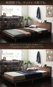 組立設置付き 棚・コンセント付きモダンデザインローベッド プレミアムボンネルコイルマットレス付き フルレイアウト クイーン(Q×1) フレーム幅160