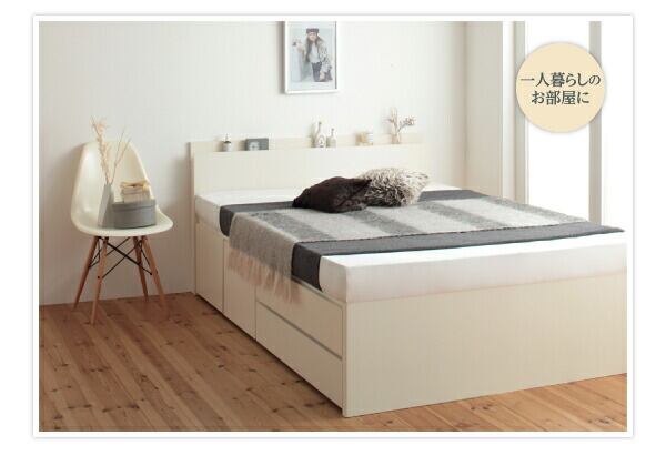 組立設置付 日本製_棚・コンセント付き_大容量チェストベッド 薄型スタンダードボンネルコイルマットレス付き シングル