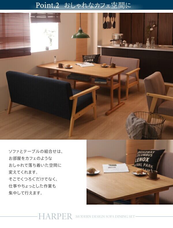 組立設置付き モダンデザイン ソファダイニングセット 3点セット(テーブル+2Pソファ2脚) W120