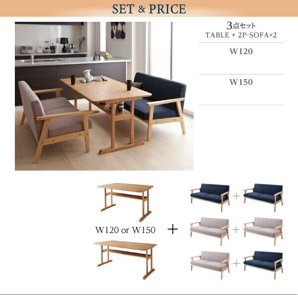 ダイニング3点セット(テーブル+2Pソファ2脚) W120 組立設置付