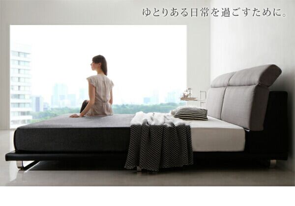 組立設置付き リクライニング機能付き・モダンデザインローベッド スタンダードポケットコイルマットレス付き ダブル