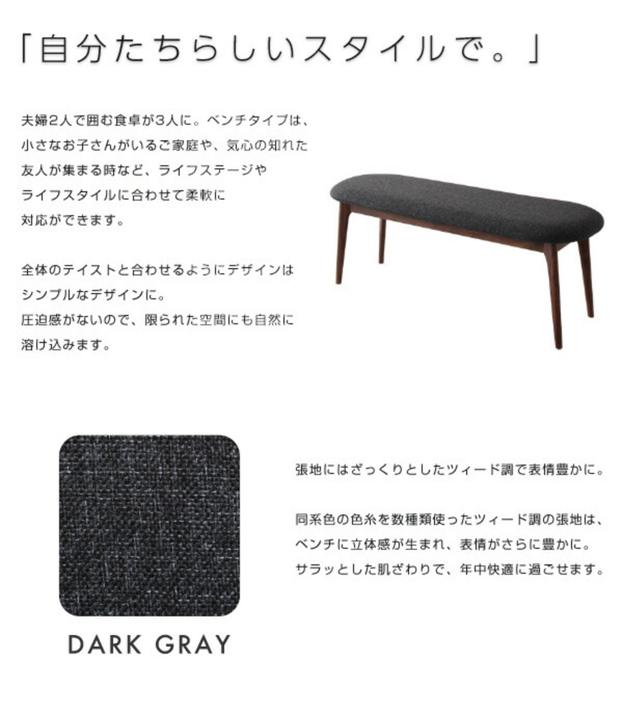 ダイニング4点セット(テーブル+チェア2脚+ベンチ1脚) 組立設置付