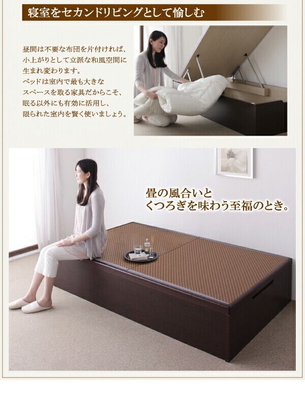 組立設置付 美草・日本製_大容量畳跳ね上げベッド セミダブル 深さグランド