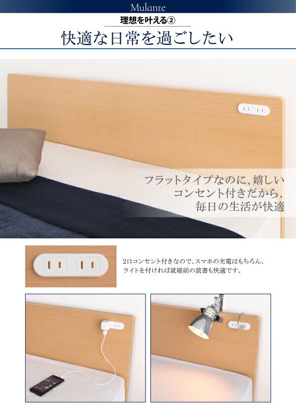 組立設置付 フラットヘッドコンセント付跳ね上げ収納ベッド 薄型プレミアムボンネルコイルマットレス付き シングル 深さラージ