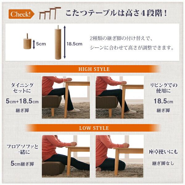 組立設置付き こたつもソファも高さ調節できるリビングダイニングセット ダイニングテーブル W120