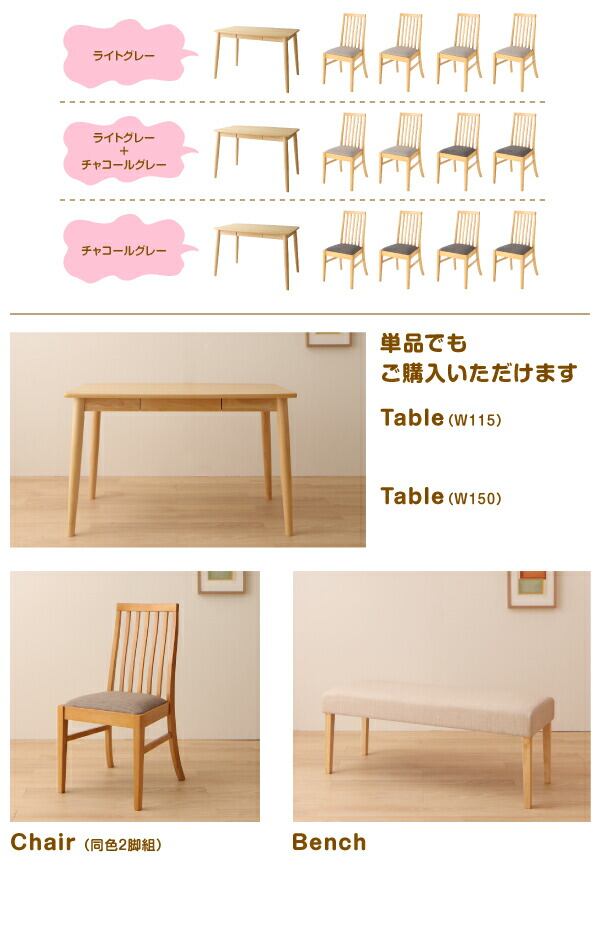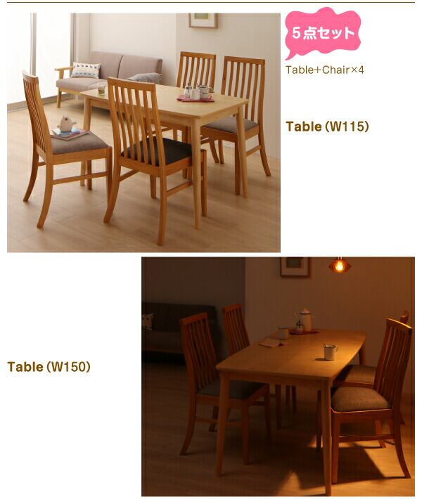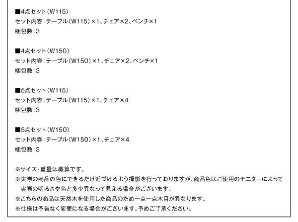 ダイニング5点セット(テーブル+チェア4脚) W115 組立設置付