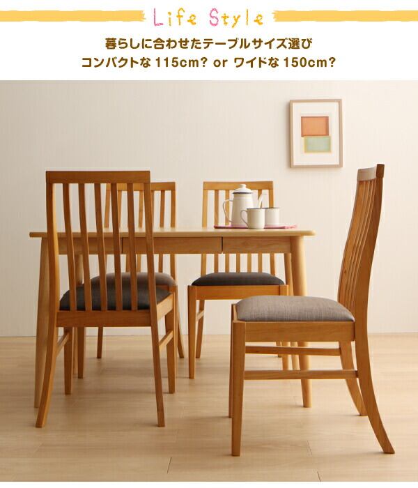 組立設置付き ファミリー向け タモ材 ハイバックチェア ダイニング 5点セット(テーブル+チェア4脚) W115