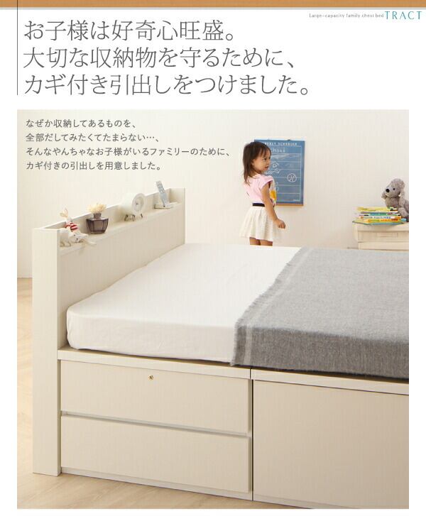 組立設置付 大容量収納ファミリーチェストベッド 薄型スタンダードボンネルコイルマットレス付き A+C ワイドK200
