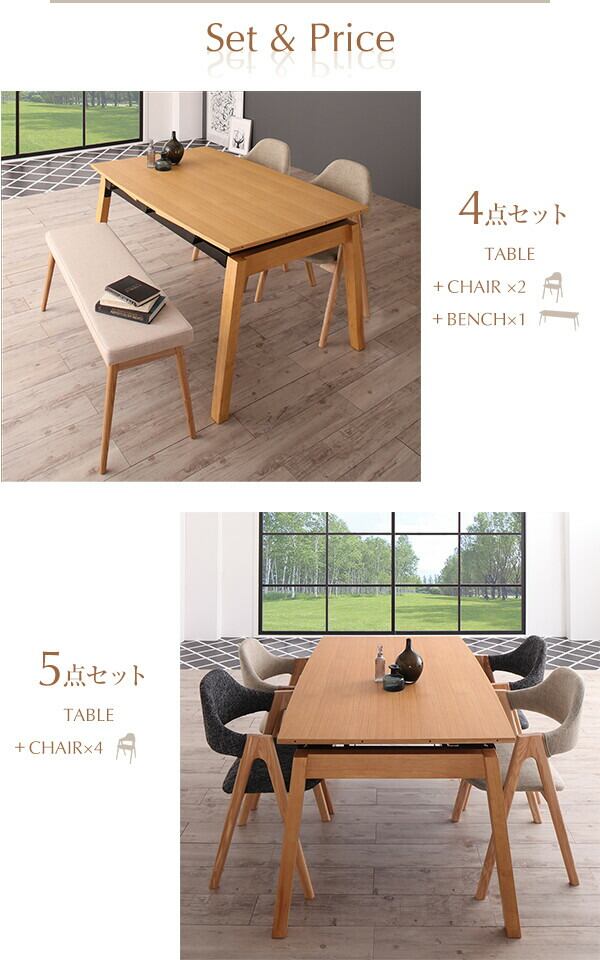 組立設置付き 天然木オーク材 スライド伸縮式ダイニングセット ダイニングテーブル W140-240