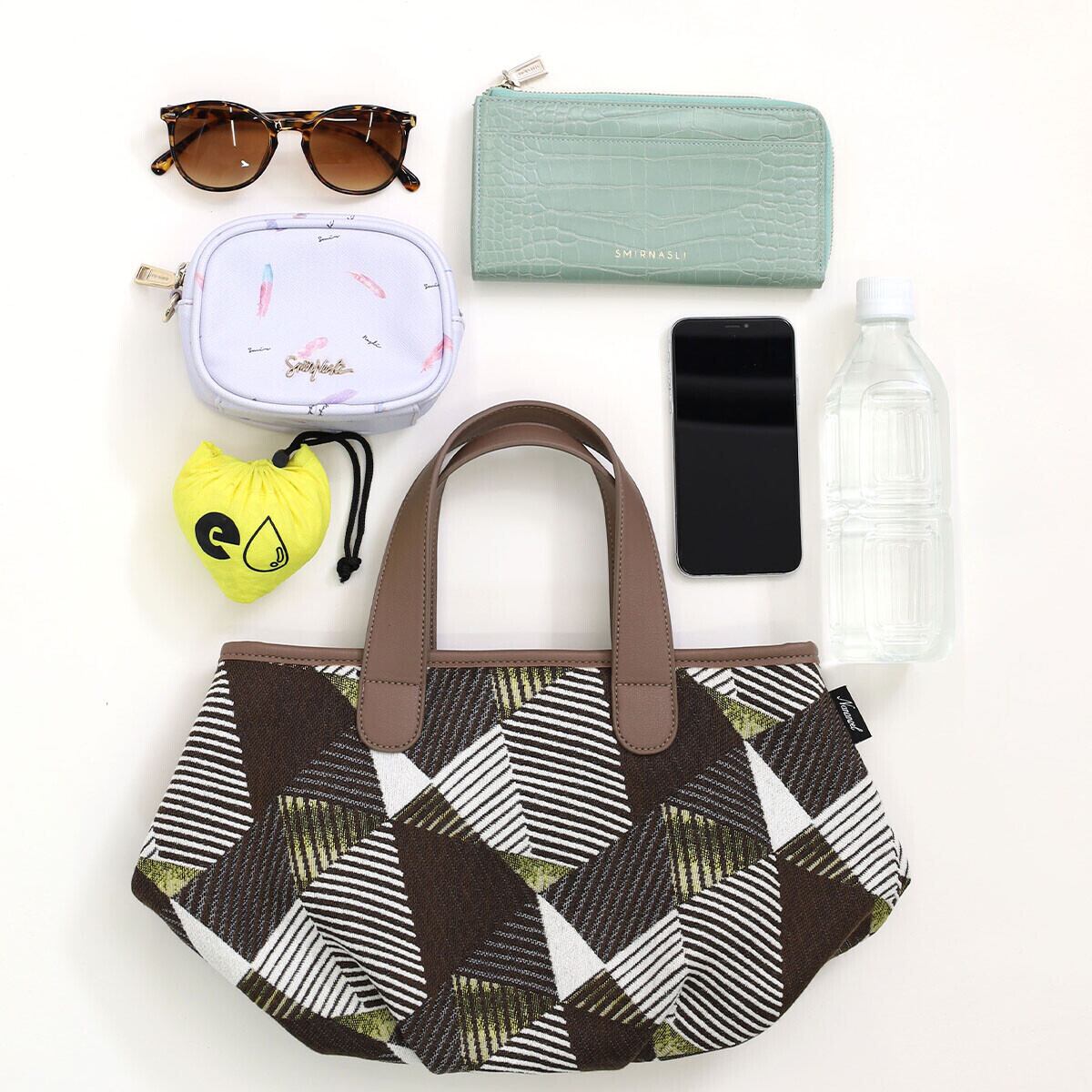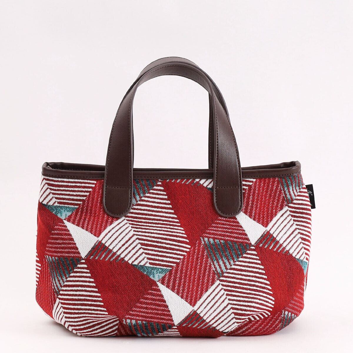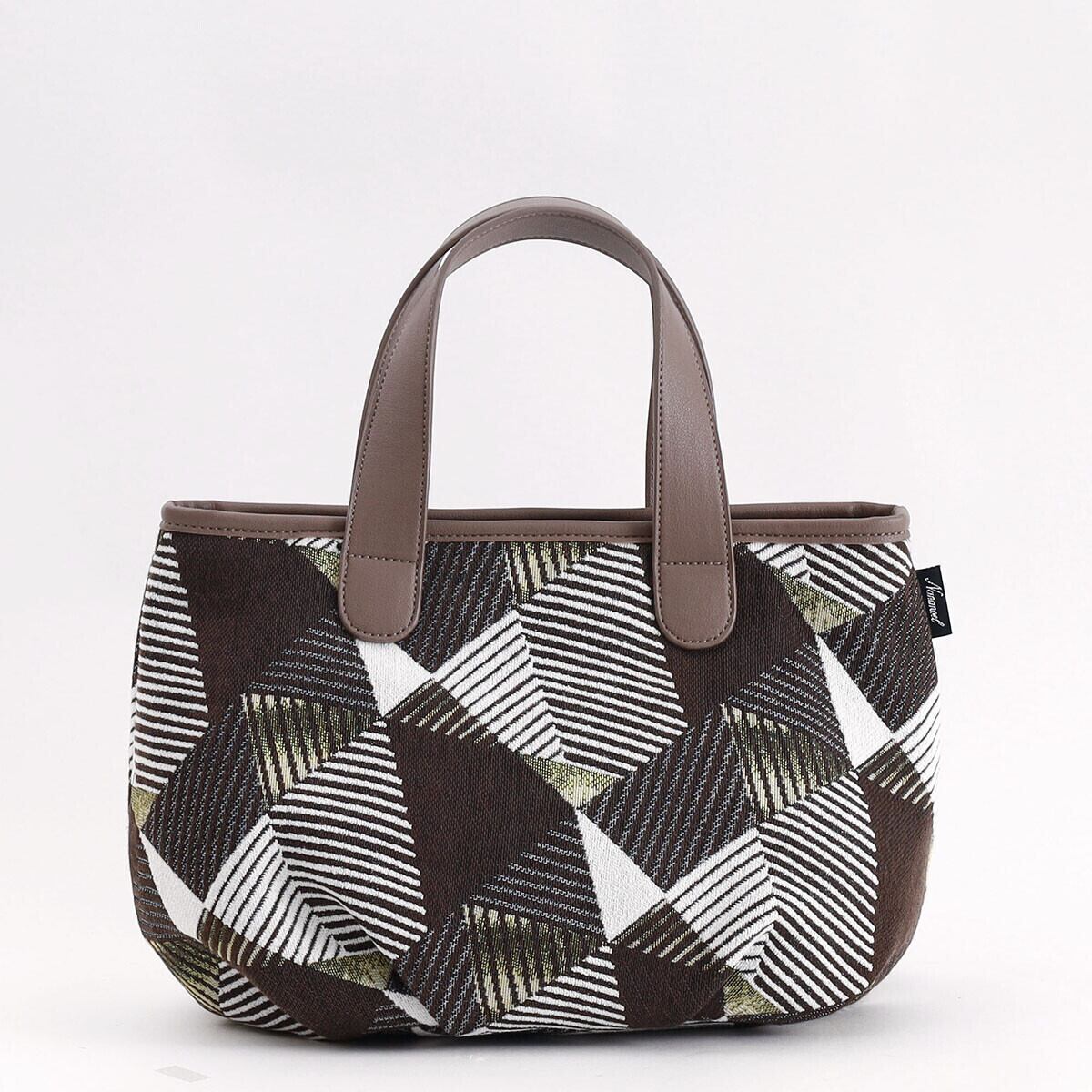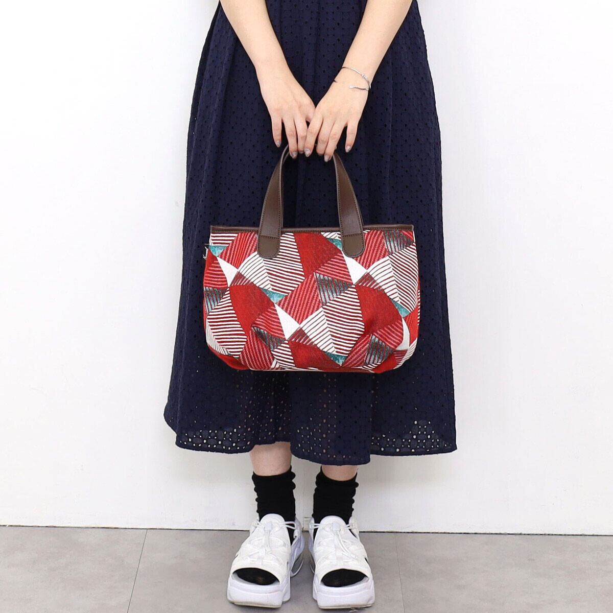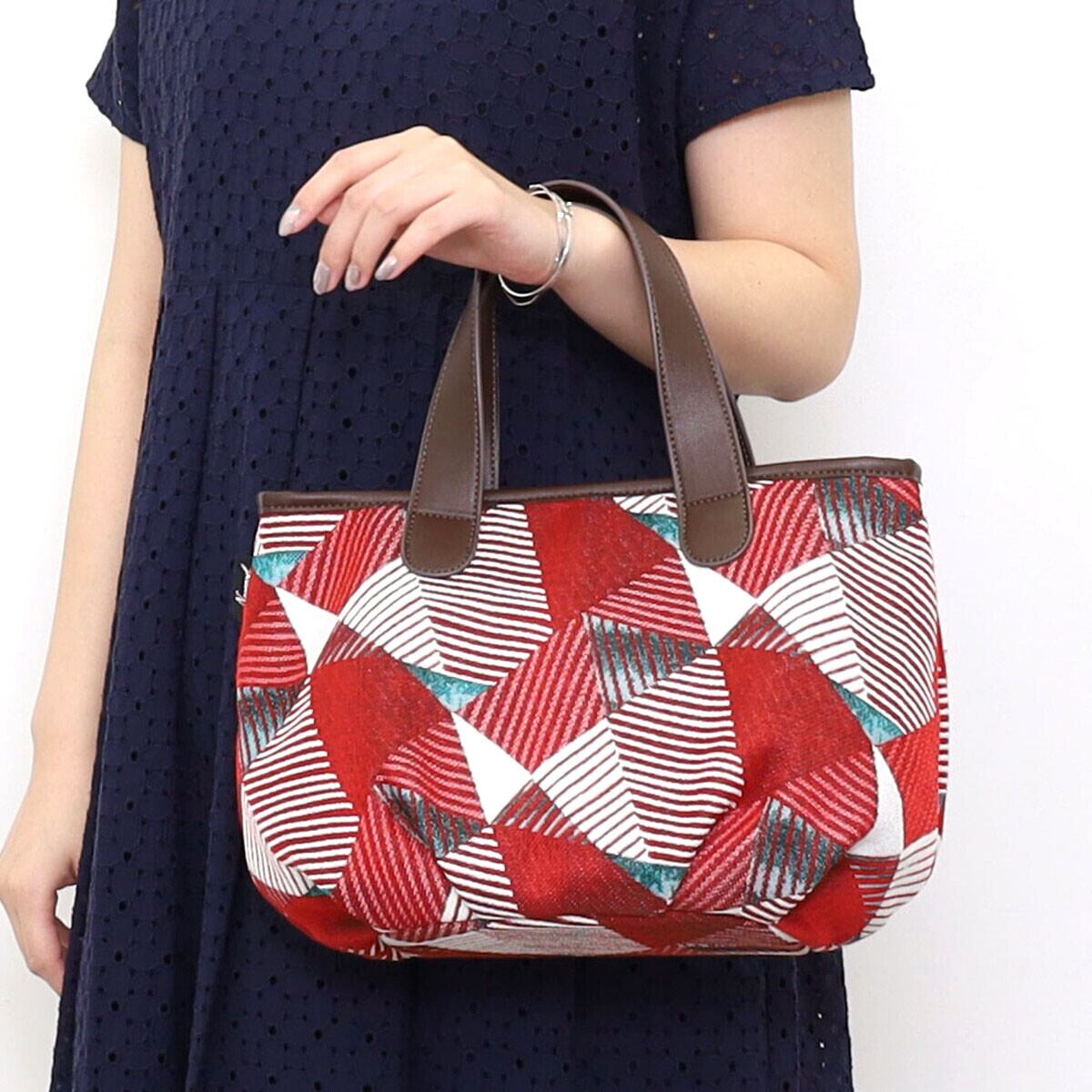 幾何学柄ファブリックを使用したトートバッグ。