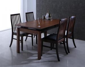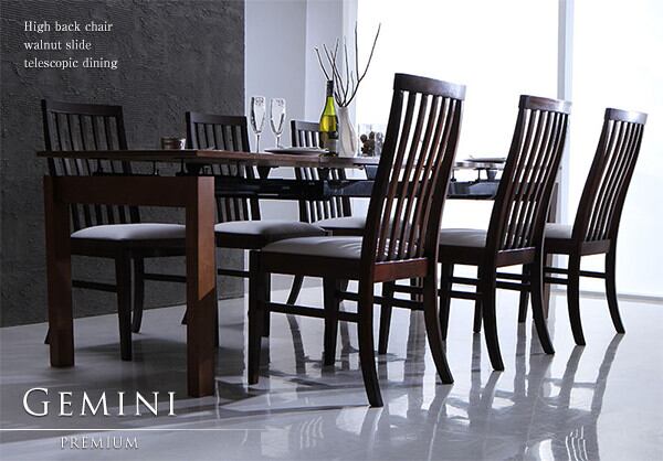 組立設置付き ハイバックチェア ウォールナット材 スライド伸縮式ダイニング 5点セット(テーブル+チェア4脚) W140-240
