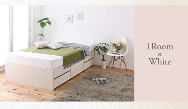 組立設置付き シンプルデザイン_大容量チェストベッド 薄型プレミアムポケットコイルマットレス付き シングル