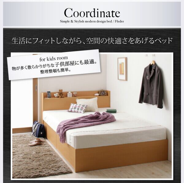 組立設置付 国産 棚・コンセント付き収納ベッド スタンダードポケットルコイルマットレス付き 床板仕様 セミダブル