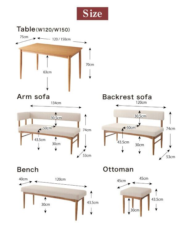 組立設置付き リビングでもダイニングでも使える ソファベンチセット ダイニングテーブル ナチュラル W150
