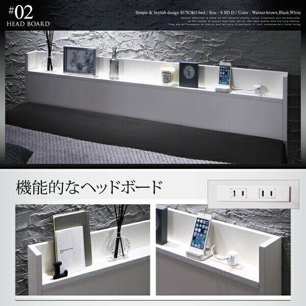 組立設置付き 棚・コンセント付きデザインすのこベッド プレミアムボンネルコイルマットレス付き シングル