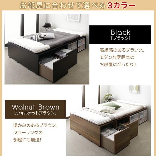 組立設置付き 布団で寝られる大容量収納ベッド 薄型スタンダードボンネルコイルマットレス付き 引き出しなし ロータイプ シングル