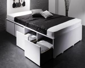 組立設置付き 衣装ケースも入る大容量デザイン収納ベッド 薄型プレミアムボンネルコイルマットレス付き 引出し4杯 シングル
