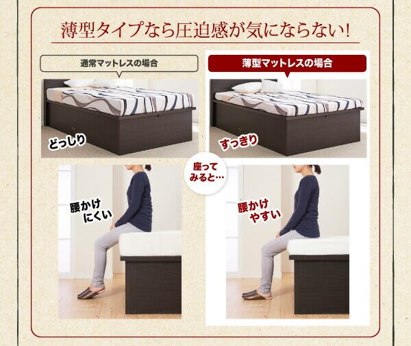 組立設置付 アウトドア収納跳ね上げベッド 薄型プレミアムポケットコイルマットレス付き セミシングル 深さラージ