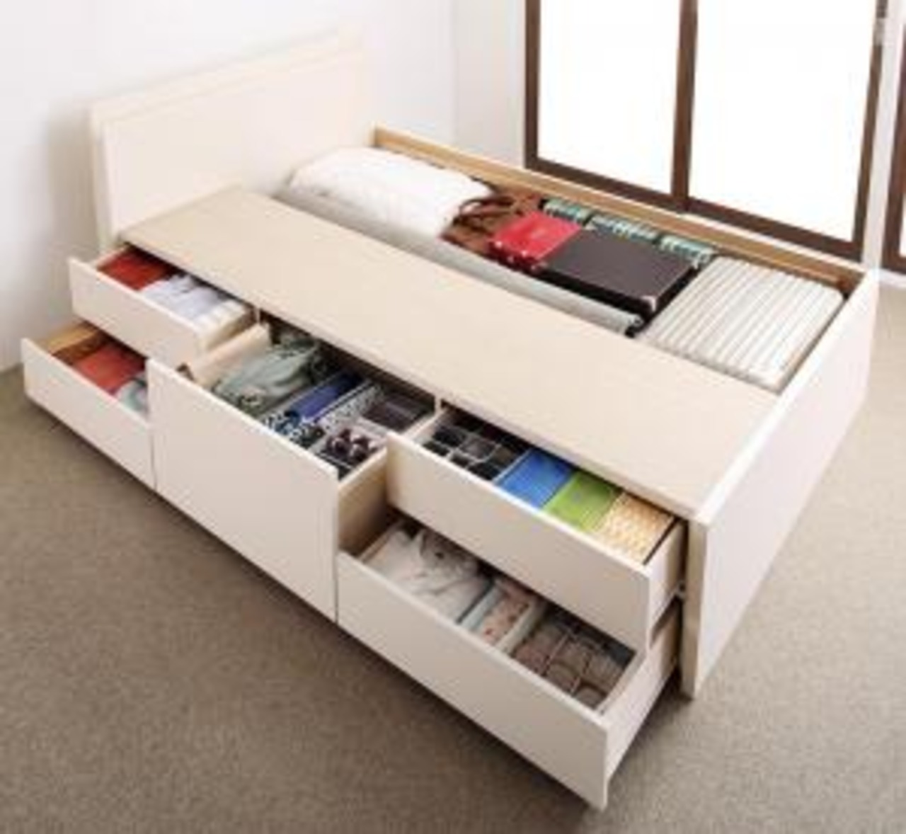 組立設置付 長く使える棚・コンセント付国産頑丈チェスト収納ベッド ベッドフレームのみ シングル