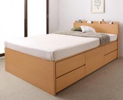 組立設置付 長く使える棚・コンセント付国産頑丈チェスト収納ベッド 薄型プレミアムポケットコイルマットレス付き セミダブル
